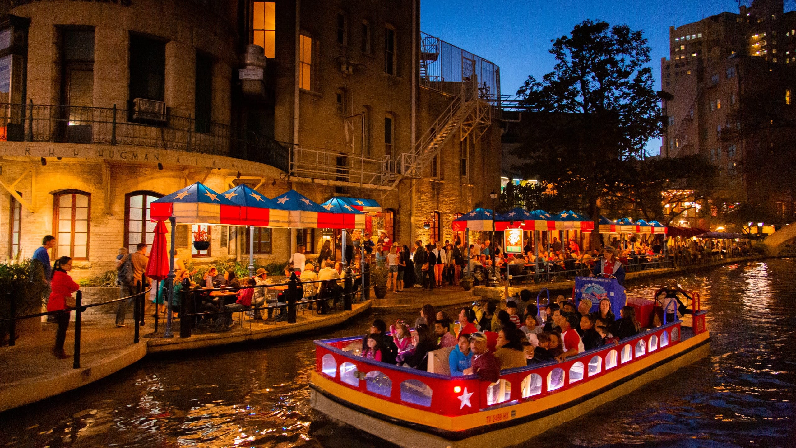 The San Antonio River Walk, or Paseo del Rio, winds 15 miles through downtown, lined with restaurants, shops, and cypress trees. Evening cruises and food tours showcase its charm, especially with recent additions like the Enchanted River Lights Night Walk.[1][2][5]