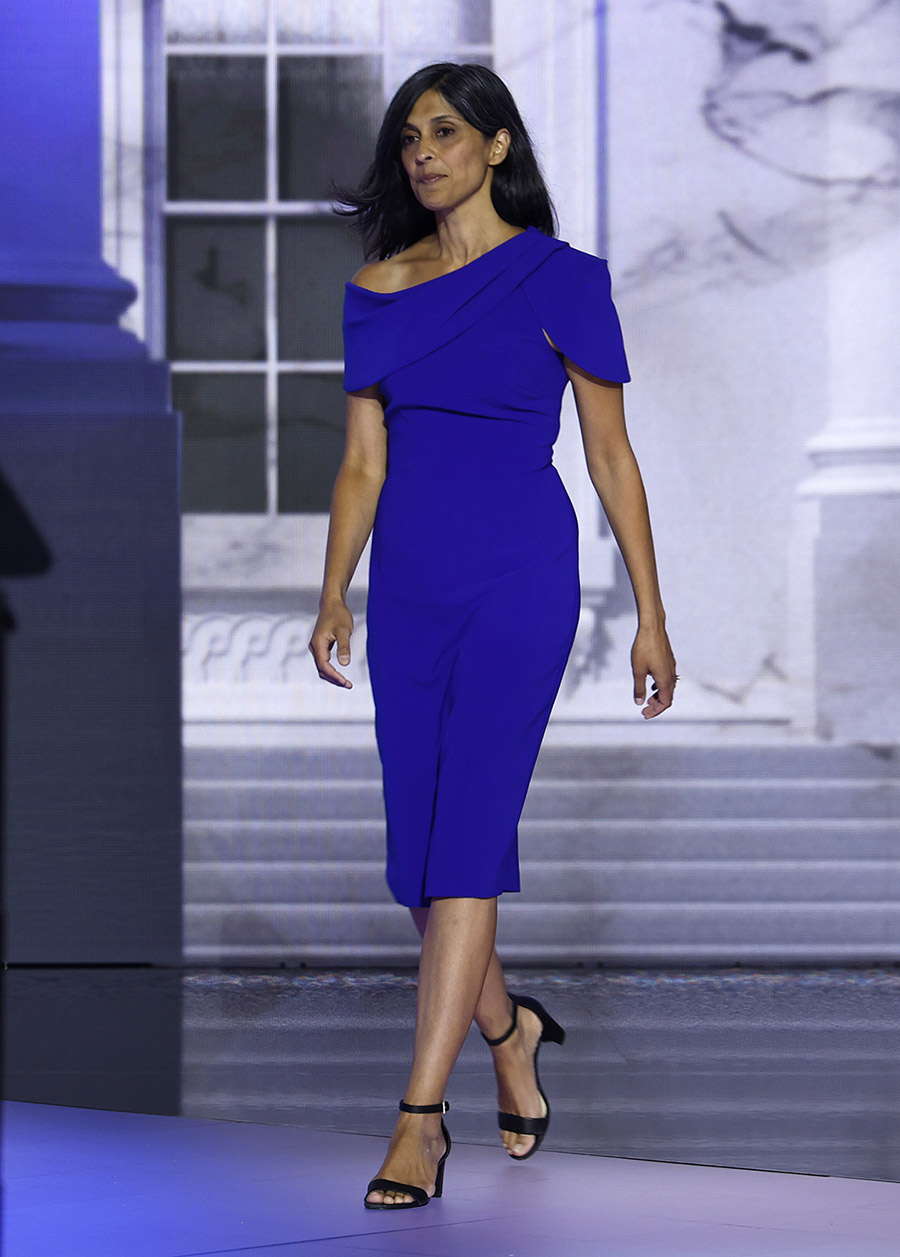 Her public image is intentionally restrained but distinctive. Political and fashion press have noted that she departs from a "pageant" style often associated with the Trump-era right, favoring a polished, professional aesthetic that underscores her legal credentials and cosmopolitan background.[1] While generally private, she has used occasional interviews to address rumors and media scrutiny around her marriage, emphasizing stability, shared values, and a desire to shield her children even as she embraces the responsibilities of national public life.[3]