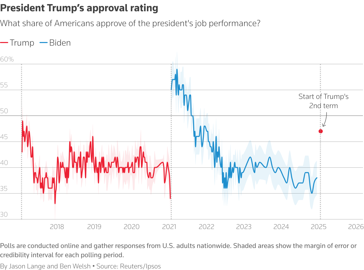 Because individual polls can vary due to methodology and sampling error, analysts often calculate polling averages to give a more stable picture of Trump’s standing. These averages, such as those maintained by Nate Silver’s Silver Bulletin, smooth out outliers and highlight broader trends rather than single-survey spikes or dips.[2]