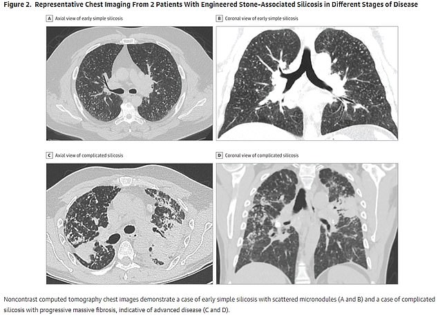 Over the past decade, doctors and public health officials have reported a surge of silicosis cases among engineered stone countertop workers in multiple countries, including the United States.[1][3][4] Many affected workers are relatively young and have developed rapidly progressive, advanced disease after only a few years of exposure, with some requiring lung transplants or dying from respiratory failure.[1][4]