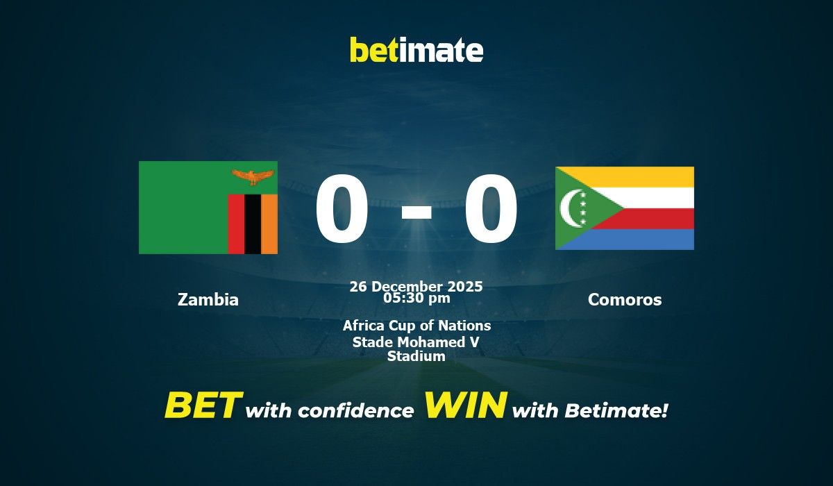Zambia enters this match with 1 point from their opening draw, holding 3rd in Group A behind Morocco and Mali. Comoros, with 0 points after a 2-goal defeat, needs a win to stay alive. The venue, Stade Mohammed V, has hosted major AFCON games, setting the stage for high stakes.