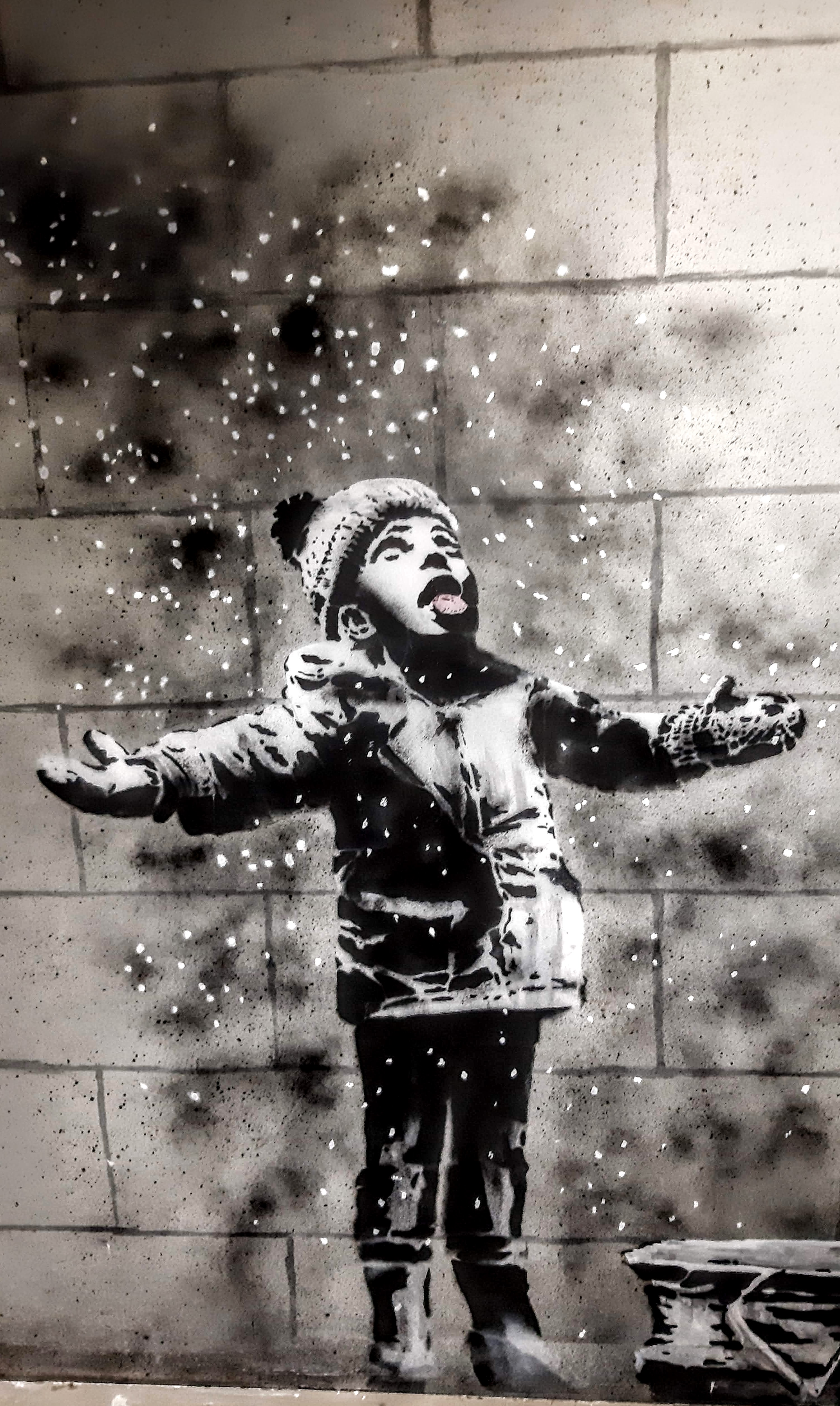 Other hits include Dismaland, a dystopian theme park parodying Disneyland, and wartime pieces like the Ukrainian dove-of-peace mural amid 2022 conflict.