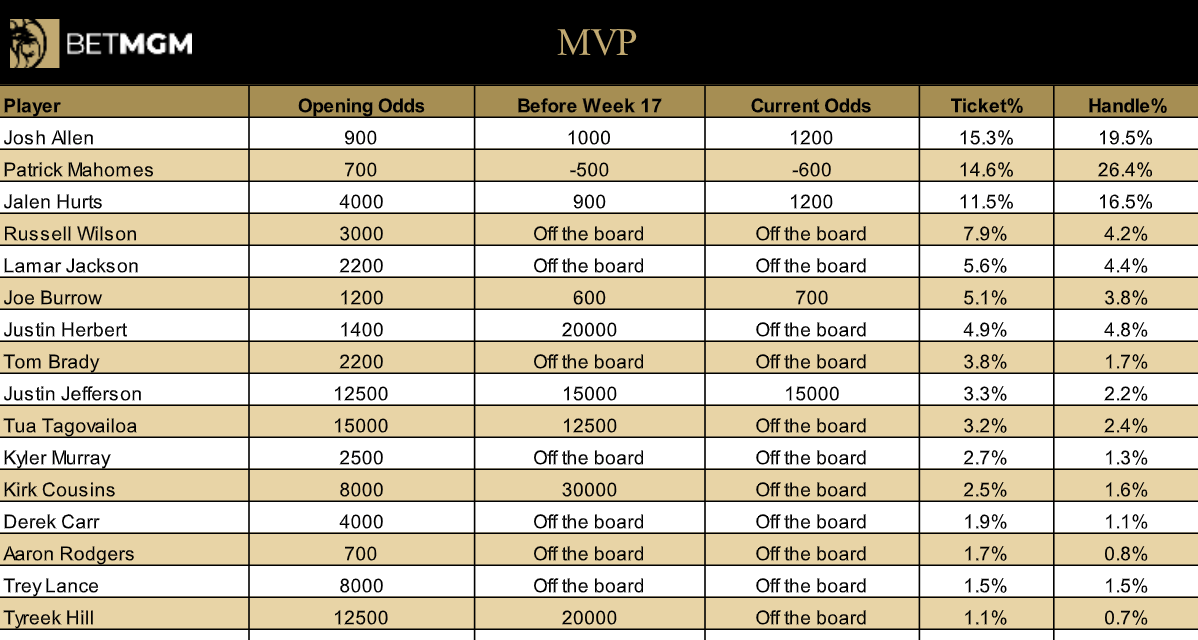 Current NFL MVP Odds Leaders