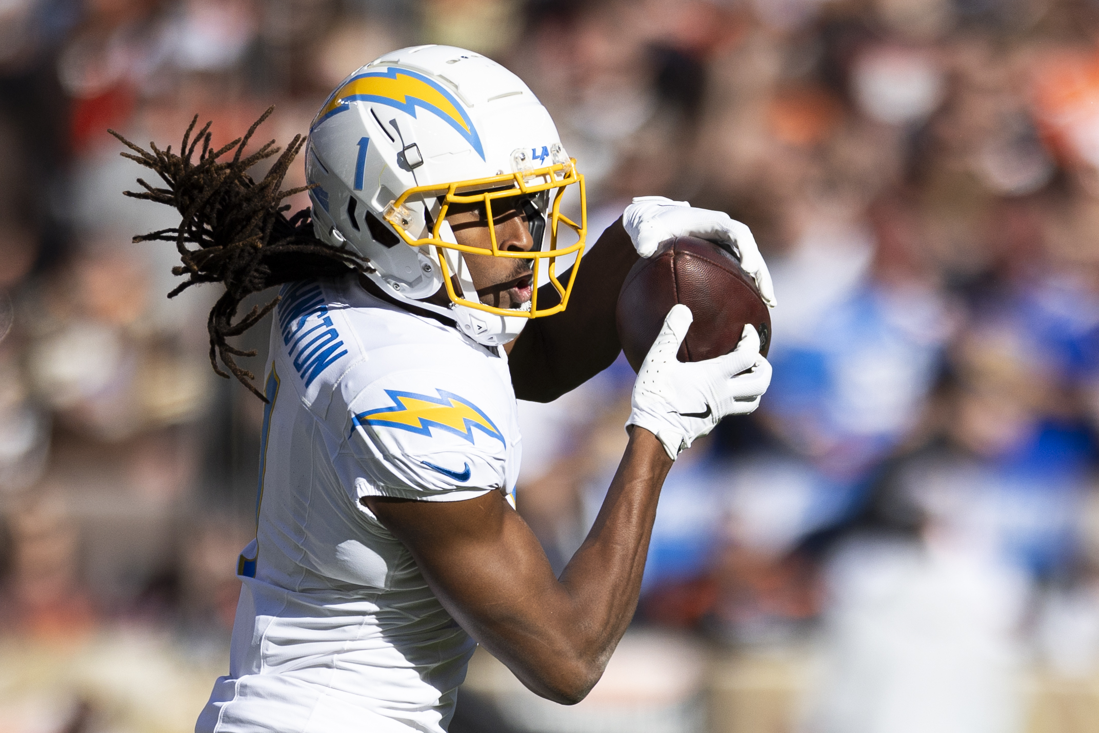 In his first NFL season in 2023, Johnston posted 38 receptions for 431 yards and two touchdowns, showing flashes of the big-play ability that made him a first-round selection.[2] He took a significant step forward in 2024, recording 55 receptions for 711 yards and eight touchdowns, solidifying his role as a starting-caliber receiver in Los Angeles.[2]