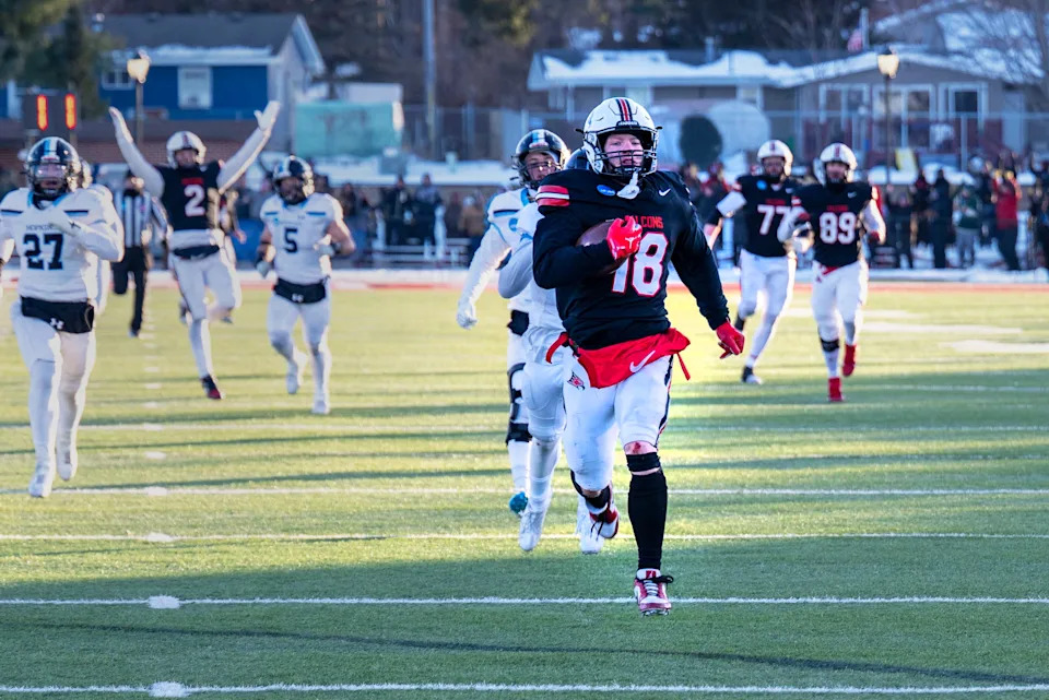 The semifinals against Johns Hopkins was a thriller. Tied late in the fourth quarter, quarterback Kaleb Blaha connected with Blake Rohrer on a game-winning 79-yard touchdown pass in the final minute, securing the 48-41 upset and the program's historic title game appearance.